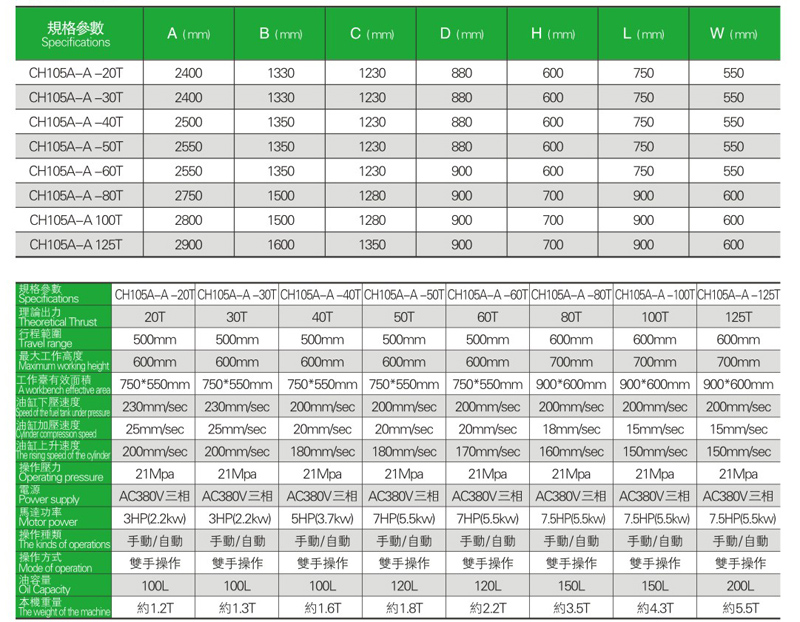 本機(jī)采用四柱三板式開放空間,采用先進(jìn)的子母缸液壓回路,油溫低。導(dǎo)柱采用高頻真空淬火處理可達(dá)到抗拉,耐磨之效果。